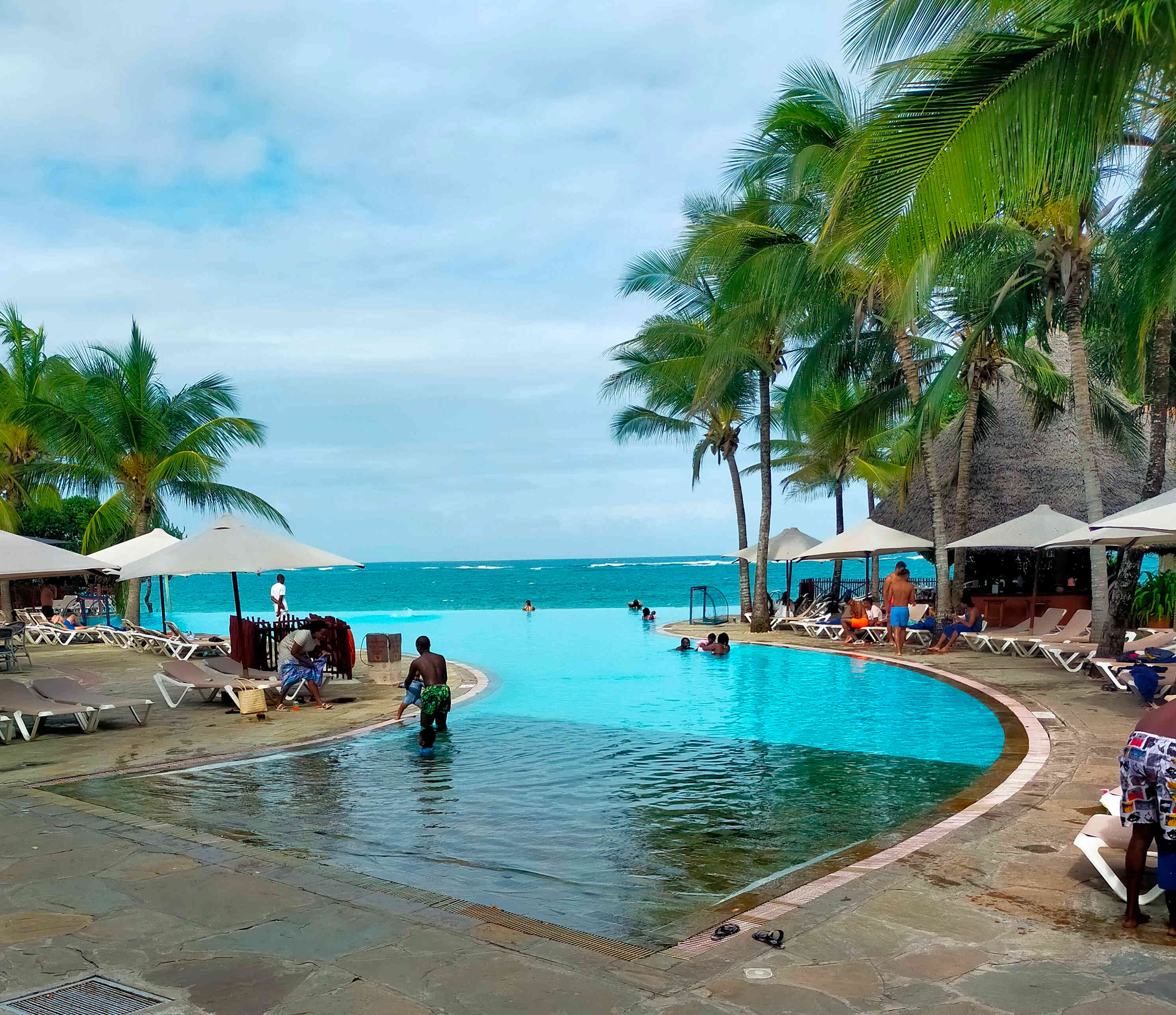 The curved infinity pool directly facing the ocean is very popular with kids.